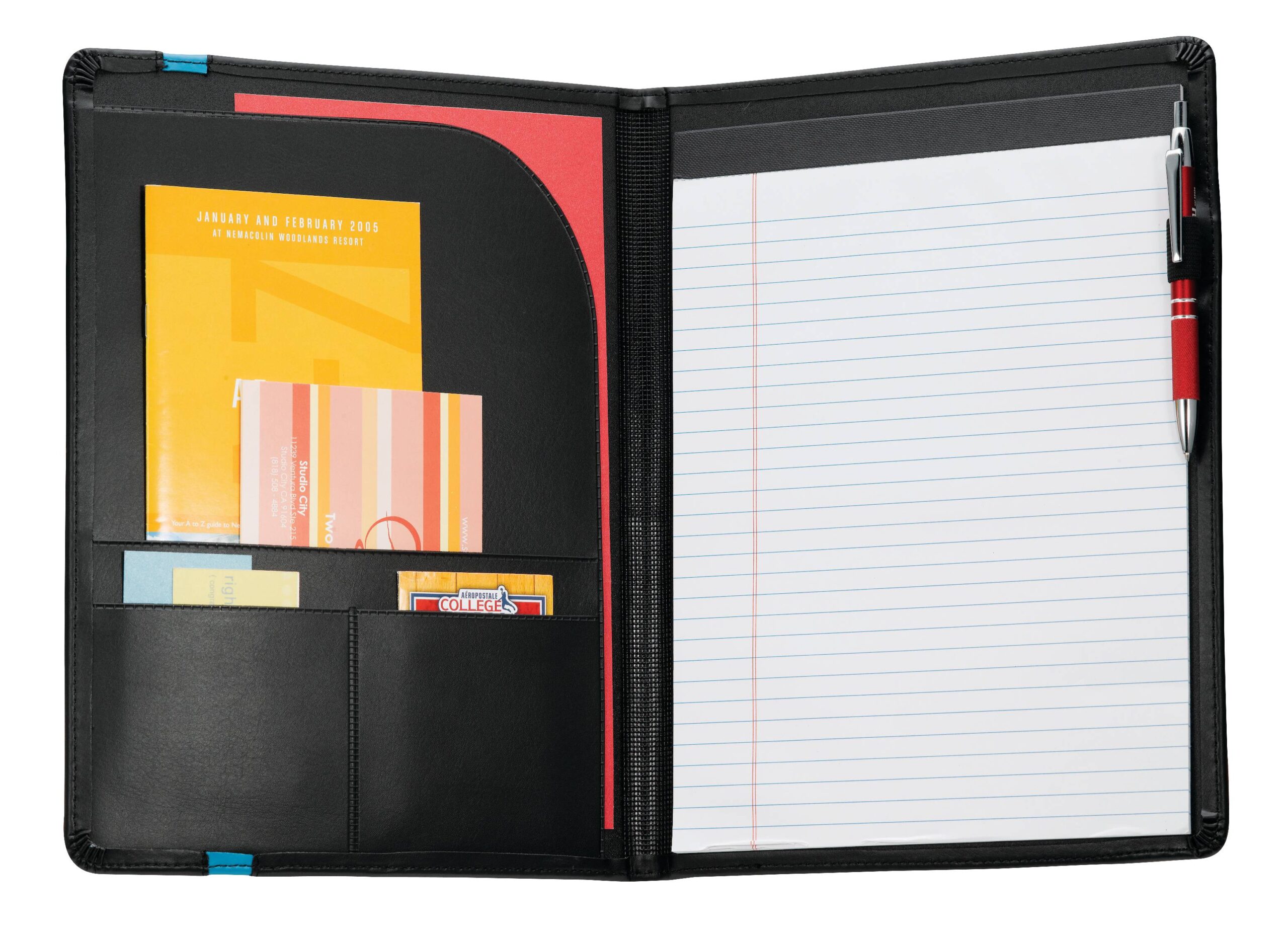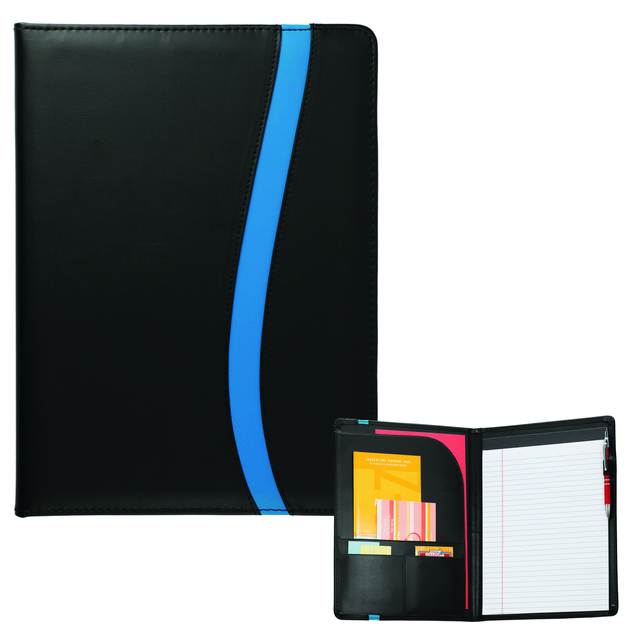The Session Padfolio with FSC® Mix Paper includes a refillable, 30 ruled page 8.5” x 11.5” FSC® Mix notepad. It features an inside file pocket, card slots and a pen loop. Pen not included